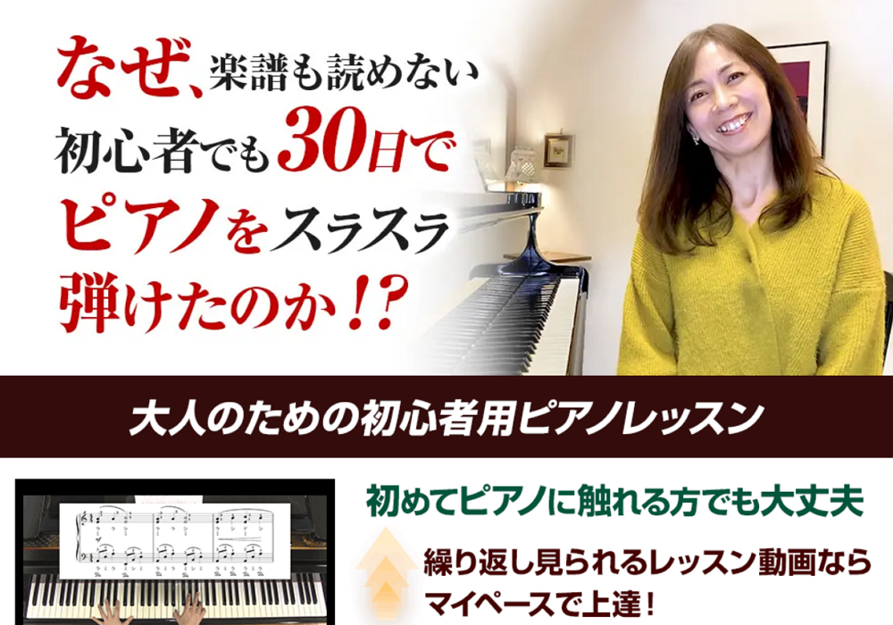 教室に通わず自宅で上達できる! 初心者が密かに独学でマスターする大人のためのピアノレッスン教材!