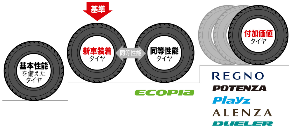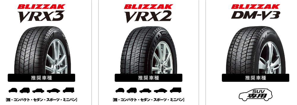 サマータイヤでも、スタッドレスタイヤでも、豊富なブリヂストン製のタイヤラインナップから選ぶことができます。